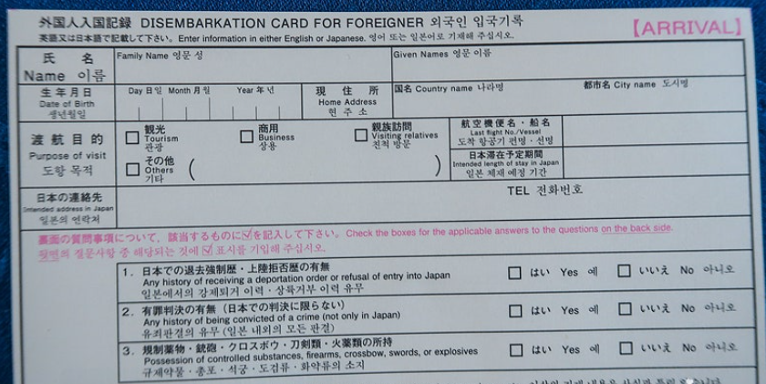 일본 입국신고서 작성법 총정리