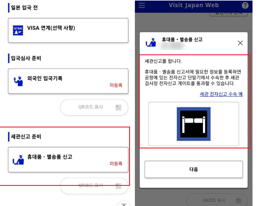 모바일로 받은 QR코드를 세관 게이트에서 스캔하면