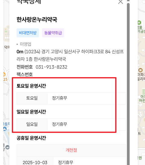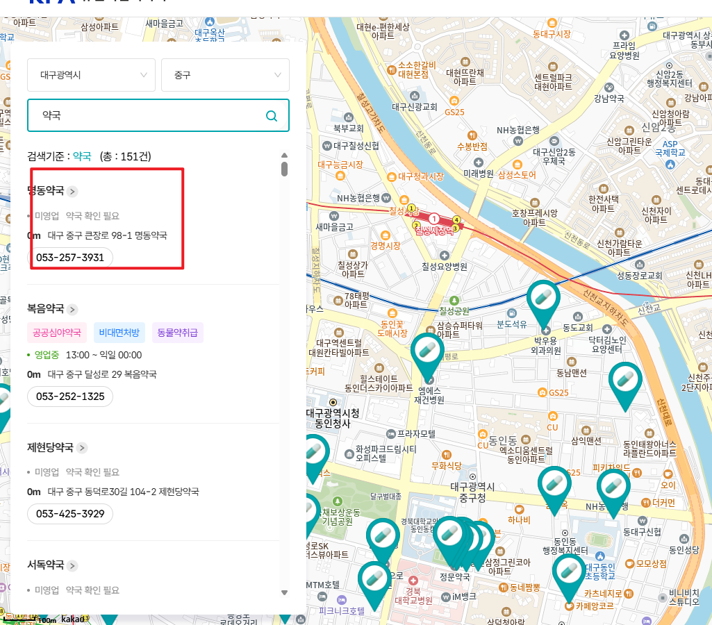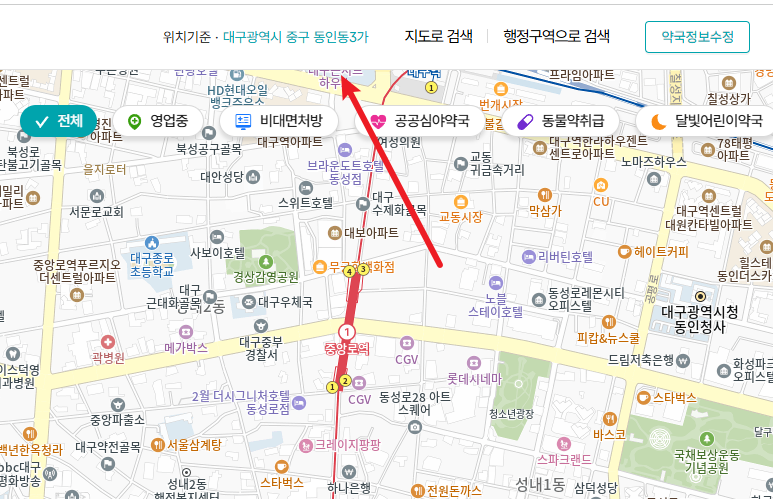 - 낮/주말/공휴일: 휴일지킴이 약국 찾기