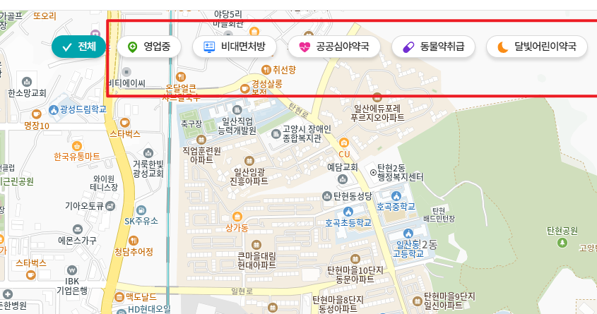 상황에 따라 약국을 나눠서 검색하면 훨씬 효율적입니다.