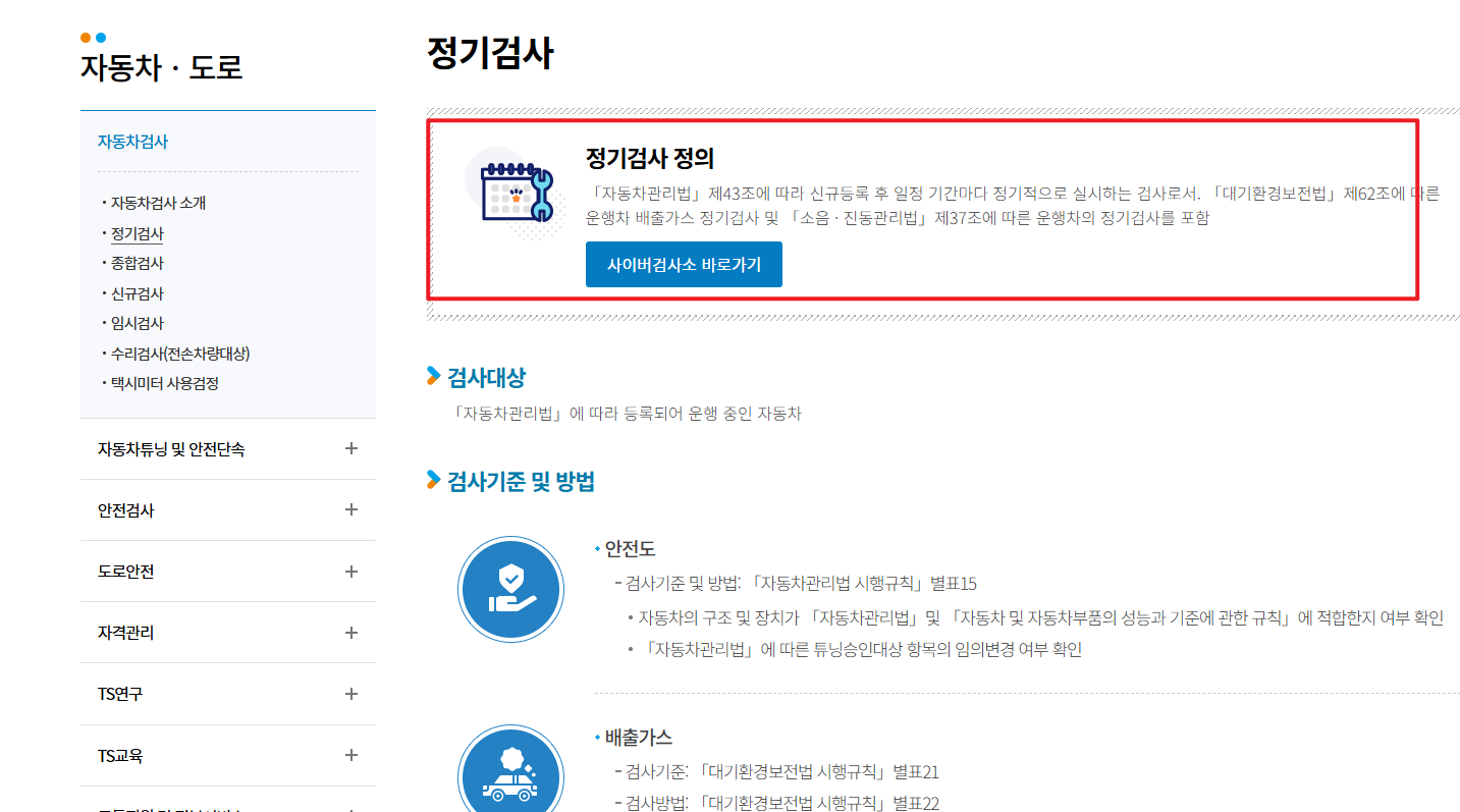 • 정기검사: 일반적인 승용차나 경차가 대상이며, 2년 또는 1년 주기로 시행됩니다.
