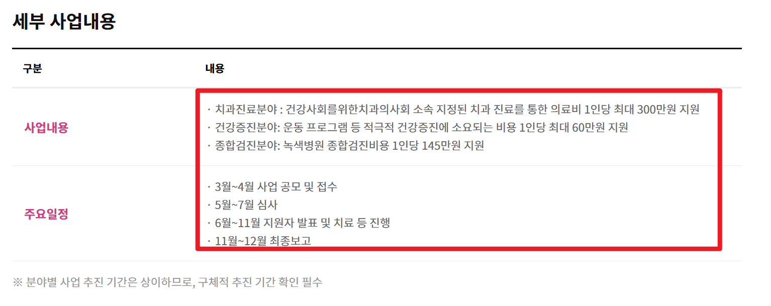 - 건강검진은 국가검진 또는 종합검진만 해당, 단순검사 제외