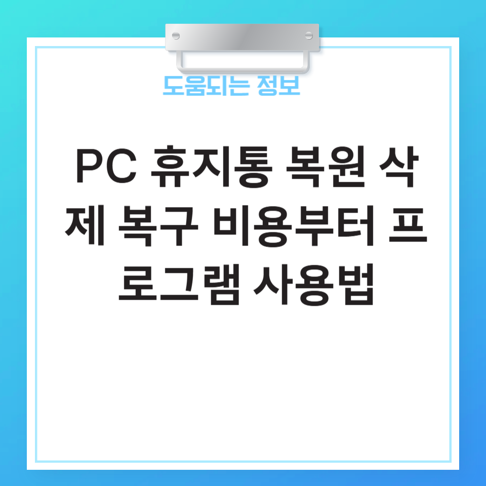 PC 휴지통 삭제 복구 프로그램 사용방법을 숙지하고, 파일 형식과 삭제 상황에 맞는 프로그램을 선택하는 것이 중요합니다.