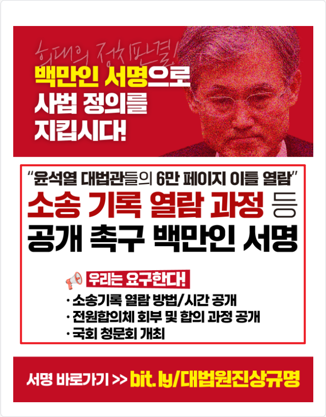 많은 시민들이 분노 속에 행동에 나서고 있고, 그 중심에는 바로 “로그기록 공개 + 처벌 촉구 100만 서명운동' 이 있습니다.
