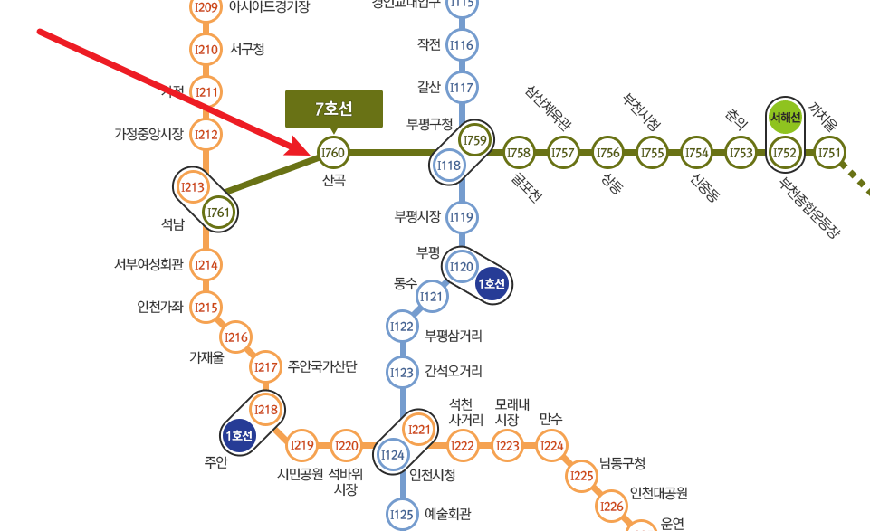 🔽인천지하철1호선노선도를 확인해보세요🔽
