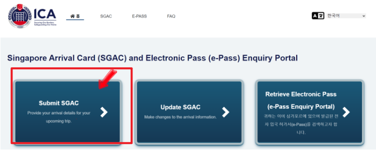 SG Arrival Card는 싱가포르 이민국(ICA)에서 운영하는 전자 입국신고 시스템입니다.