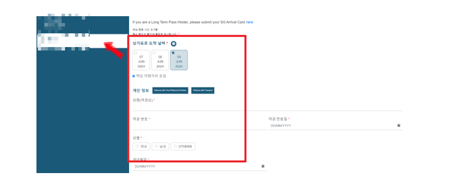 싱가포르 입국신고서 작성방법의 가장 기본 단계입니다.