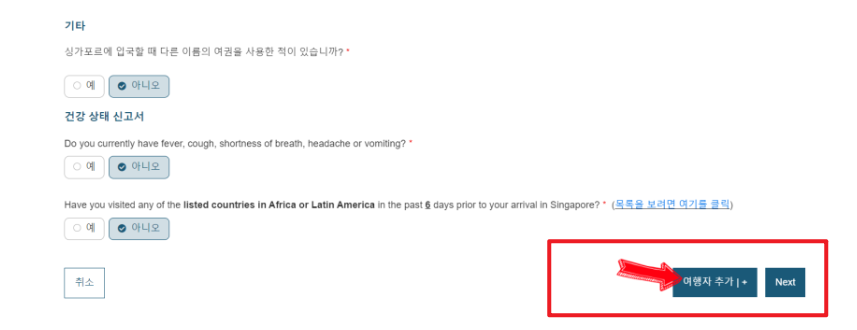 특히 싱가포르 입국신고서 작성방법 중 건강 관련 질문은 반드시 사실대로 작성해야 합니다.