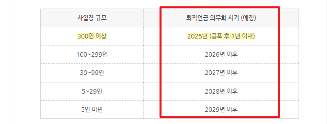 - 퇴직금 연금의무화: 2025년부터 단계 도입