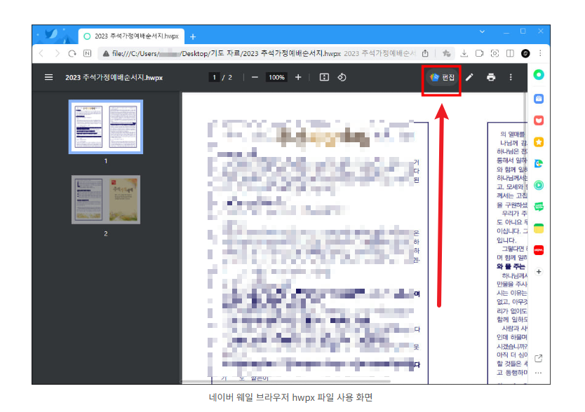 Hwpx 파일열기에 특화된 뷰어를 사용하면 편집 기능은 제한되지만, 정확한 레이아웃 확인이 가능합니다.