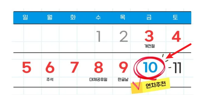 - 10월 10일 임시공휴일 여부는 아직 미정